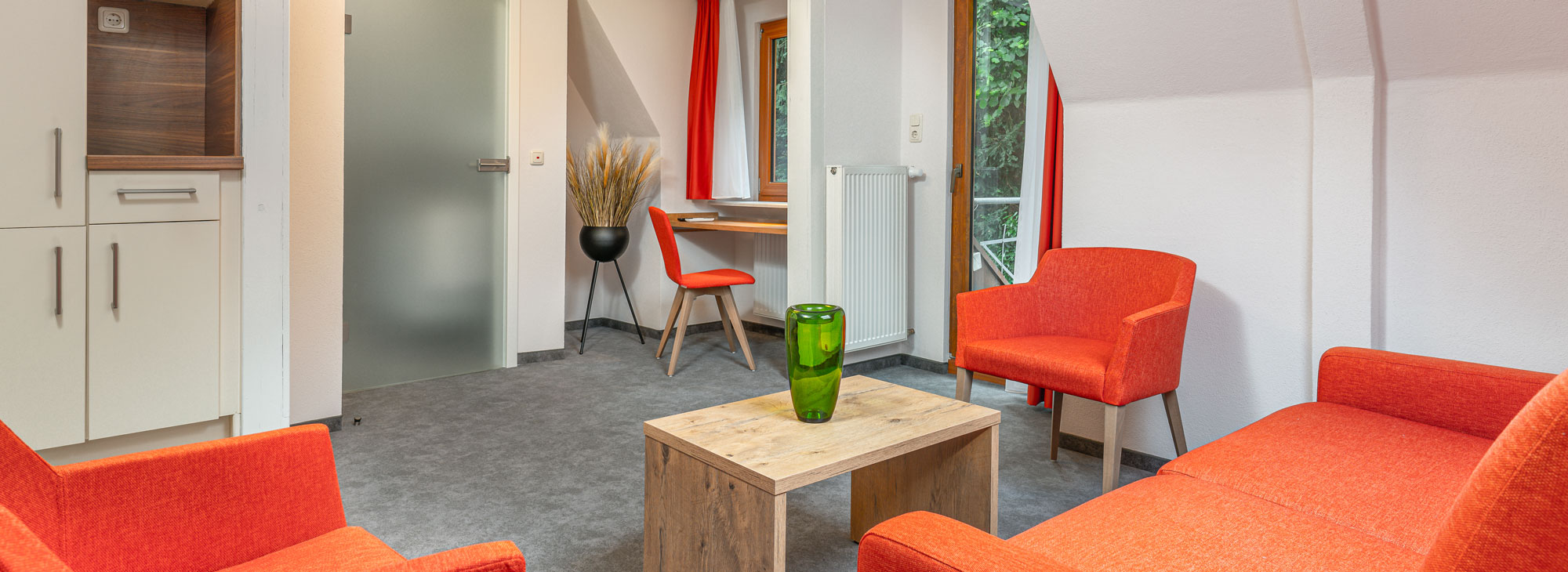 Our completely new studios are non-smoking studios and were furnished very modernly and comfortably for you in summer 2023. The studios can only be reached by stairs and have the basic equipment of a 32" LCD TV with satellite receiver, free WiFi, private designer bathroom with walk-in shower/toilet, hair dryer, cosmetic mirror and bathroom accessories. Further details can be found on the individual pages. We wish you a pleasant stay.